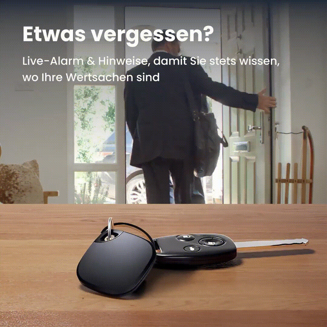 Haben Sie etwas in der Nähe verloren? Nutzen Sie den akustischen Alarm, um es schnell zu finden. Außerhalb der Reichweite? Prüfen Sie die letzte bekannte Position, um Ihre Schritte zurückzuverfolgen.