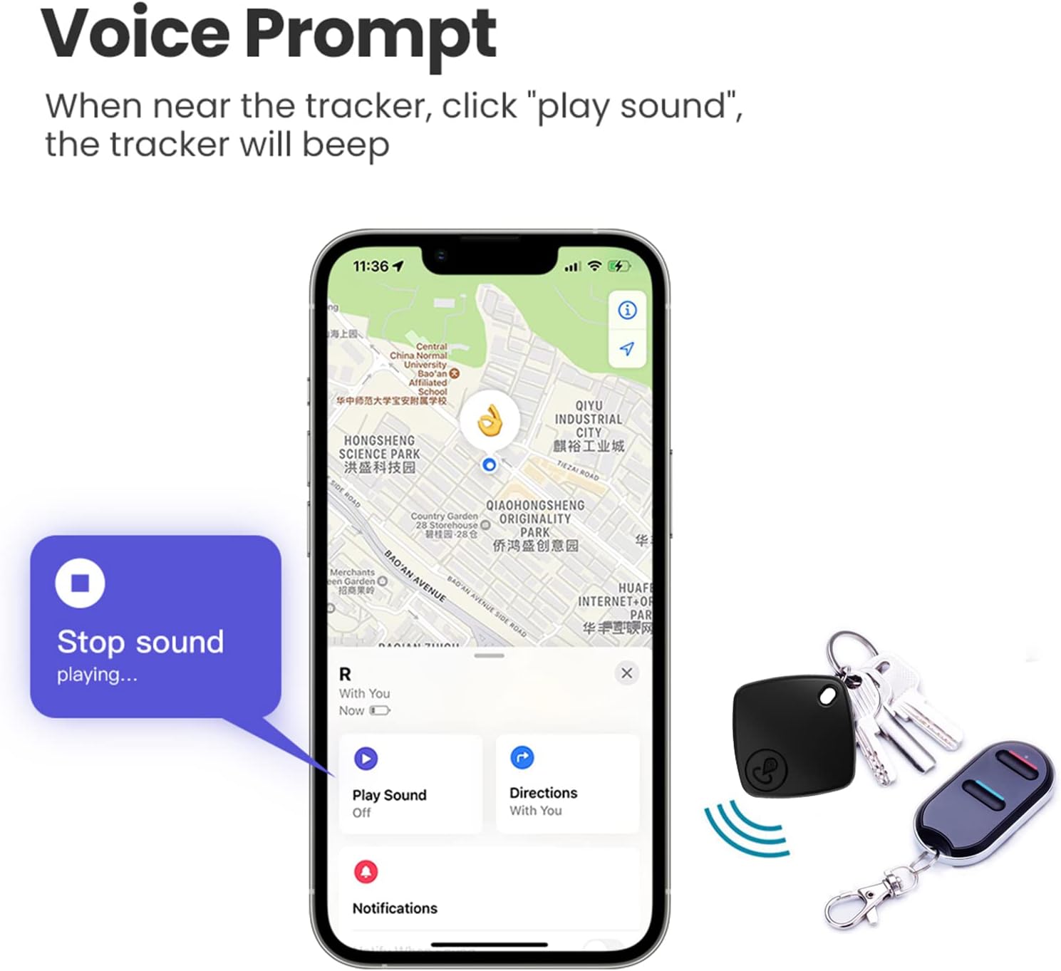 Egal, ob es sich um Ihre Schlüssel, Ihre Brieftasche, Ihr Gepäck, Ihren Rucksack oder sogar Ihr Haustier handelt, dieser Tracker wird über die mobile App sofort aktualisiert.