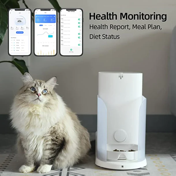 Automatischer Futterspender für Haustiere, mit dem Sie über die App portionierte Essenspläne festlegen können.