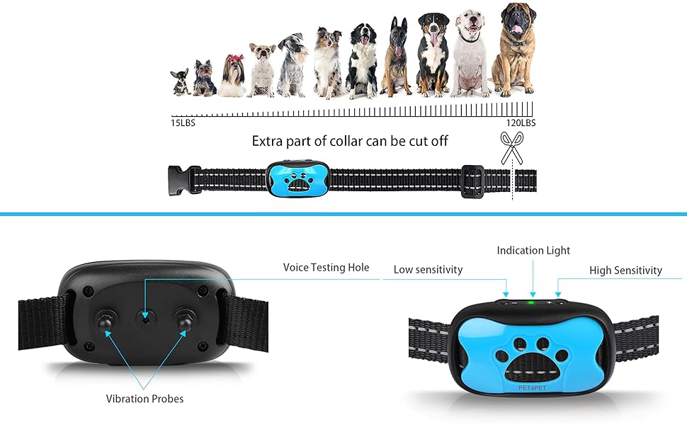 Unser Hundetrainingshalsband verwendet eine Kombination aus Ton und Vibration, um Ihnen beim Training Ihres Haustiers zu helfen. Es erkennt automatisch, wenn Ihr Hund bellt, und gibt zunächst einen Warnton aus. Nach drei Warnsignalen beginnt das Halsband zu vibrieren, um das Bellen zu verhindern, sodass Sie Ihr Haustier ohne Schocks oder Schmerzen trainieren können.