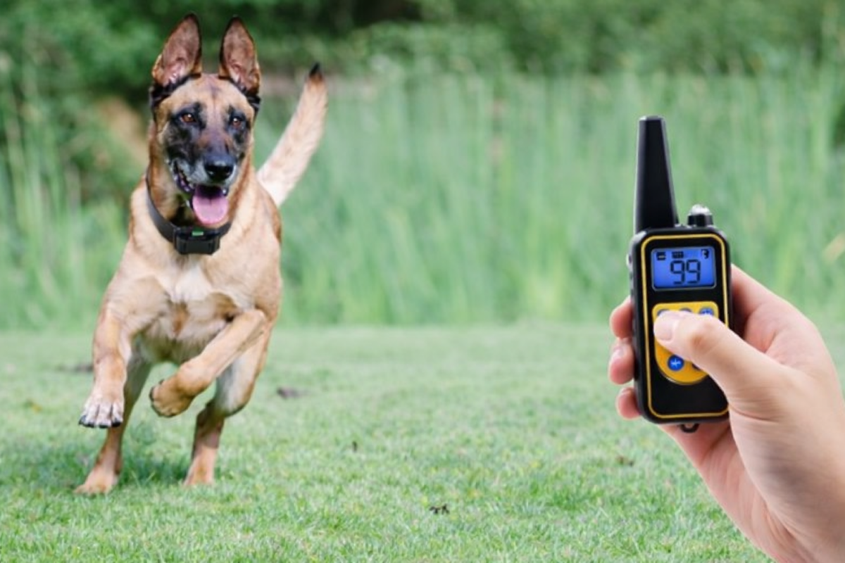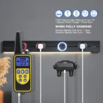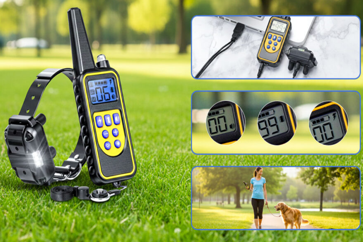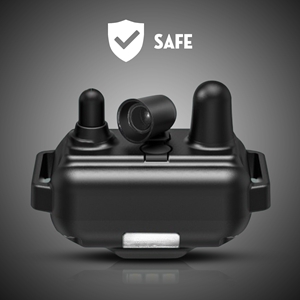 Kabellose Steuerung mit einer Reichweite von bis zu 2600 ft. Das Halsband bietet eine Nutzungsdauer von 3–6 Tagen, die Fernbedienung 6–12 Tage nach vollständigem Aufladen. Ideal für das Training im Park oder im Garten.