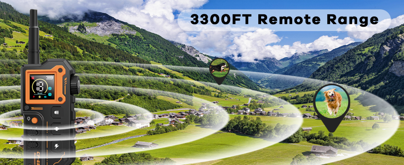 Mit einer beeindruckenden Reichweite von 3300 Fuß hat Ihr Hund mehr Bewegungsfreiheit und bleibt dennoch unter Kontrolle. Die Fernbedienung unterstützt zwei Halsbänder gleichzeitig, ideal für das Training von zwei Hunden ohne erneutes Einstellen.