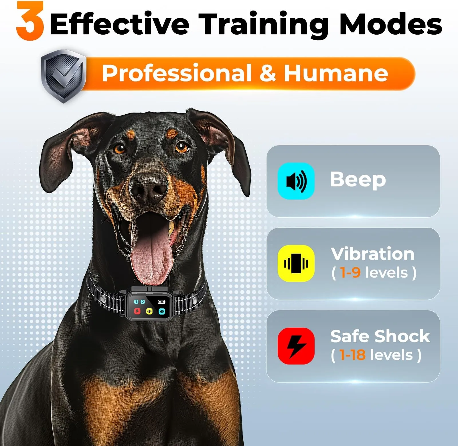 Dieses Hundetrainingshalsband bietet drei einstellbare Modi – Ton, Vibration (1–9 Stufen) und sicheren Impuls (1–18 Stufen). Es ermöglicht ein individuelles und sicheres Training und hilft effektiv, unerwünschtes Verhalten zu korrigieren. Die Fernbedienung verfügt außerdem über eine integrierte Beleuchtung, die Ihnen nachts den Weg ausleuchtet.