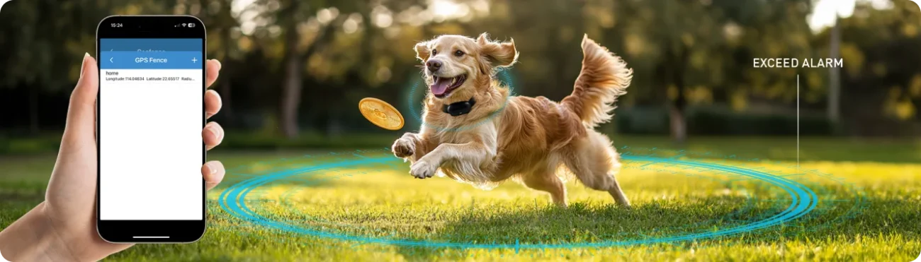 Mit GPS- und WLAN-Doppelzäunen sendet der Hund-GPS-Tracker eine Alarmmeldung an die App, wenn Ihr Haustier den festgelegten sicheren Bereich verlässt, um Haustierverlust oder Diebstahl zu verhindern.